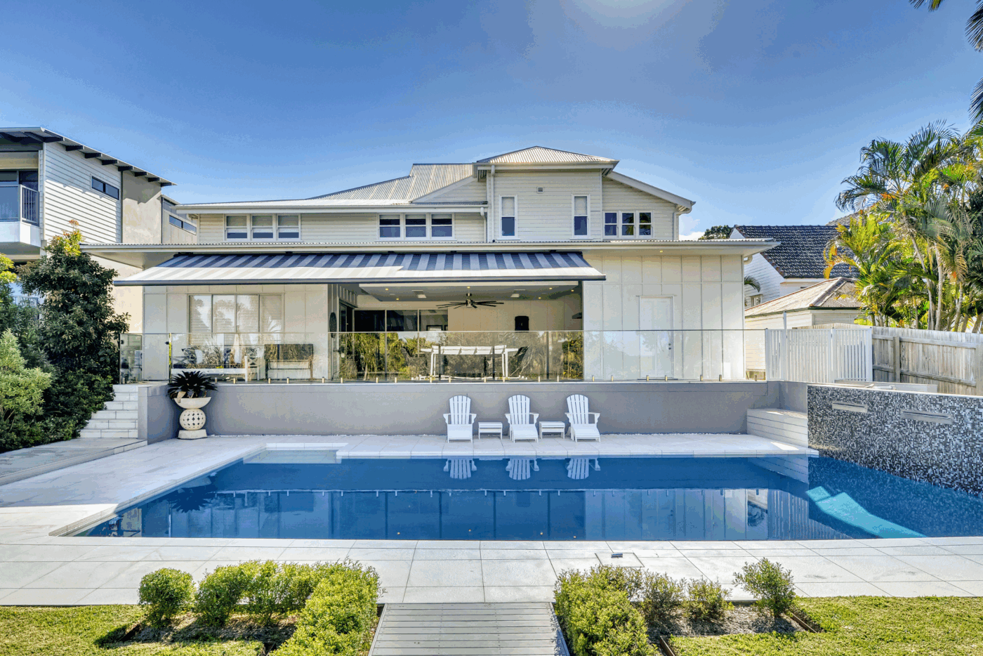 markilux 3300 folding arm awning featuring a fully enclosed cassette that almost disappears into the wall cavity. German precision design with clean lines and a customisable pitch during installation to allow optimum sun protection. Available in Brisbane, Sunshine Coast and Gold Coast.